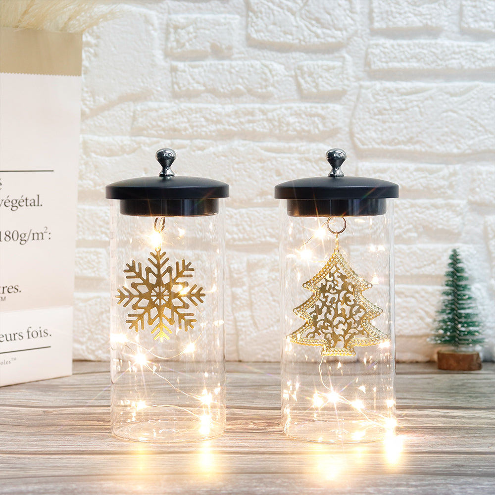 - Versatile Bedroom Ambiance:Whether immersing yourself in late-night chapters or welcoming the morning with reflective musings, our lamps seamlessly grace bedside tables, setting the mood just right. The clear glass and gold Christmas tree and snowflakes add an enchanting layer of charm to your personal sanctuary, creating a warm and inviting haven.